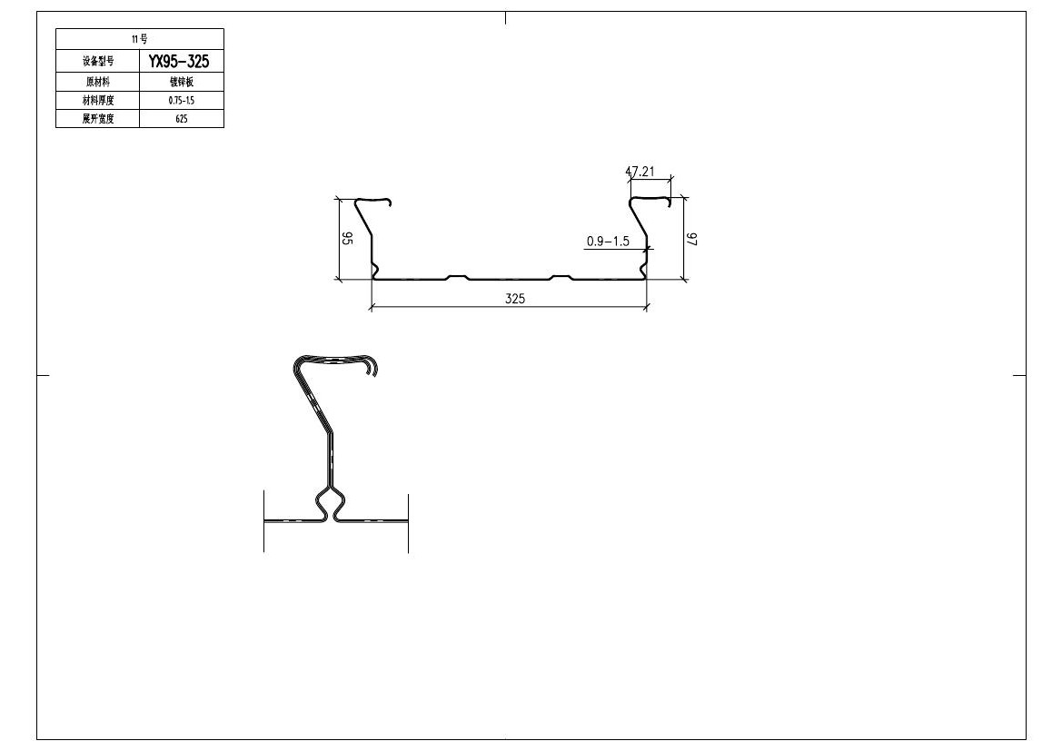 YX95-325閉口樓承板節省大量臨時性模板,省去全部或部分模板支撐;作為受拉鋼筋使用,減少鋼筋的制作和安裝工作;減少混凝土用量,減輕結構的荷載,適于高層建筑。